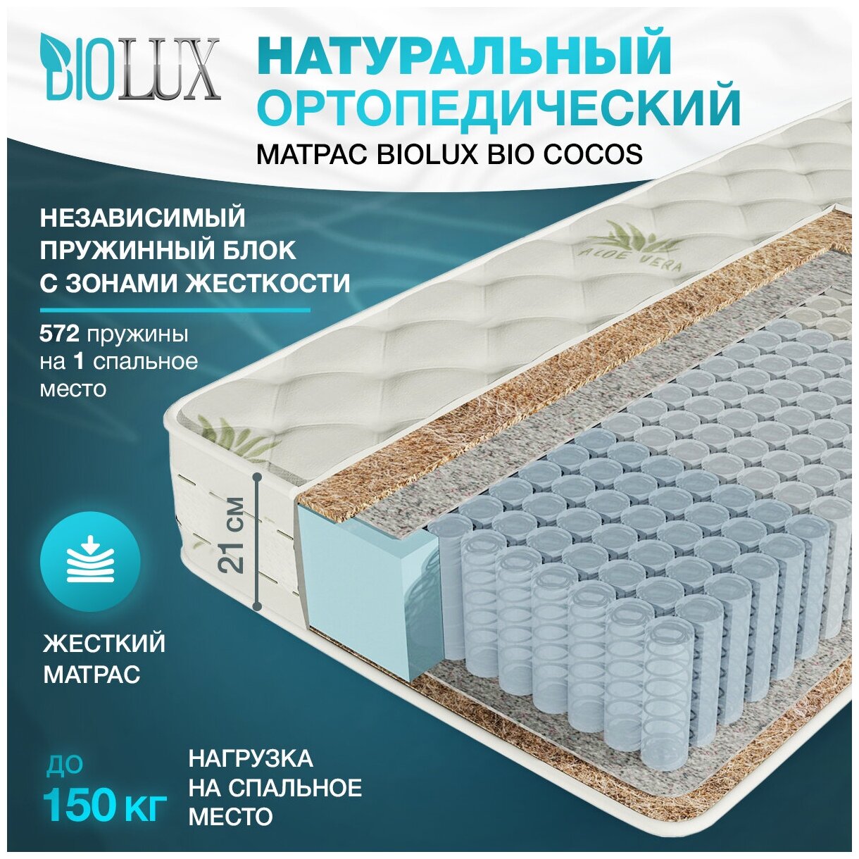 Натуральный ортопедический матрас BioLux Bio Cocos 160х186