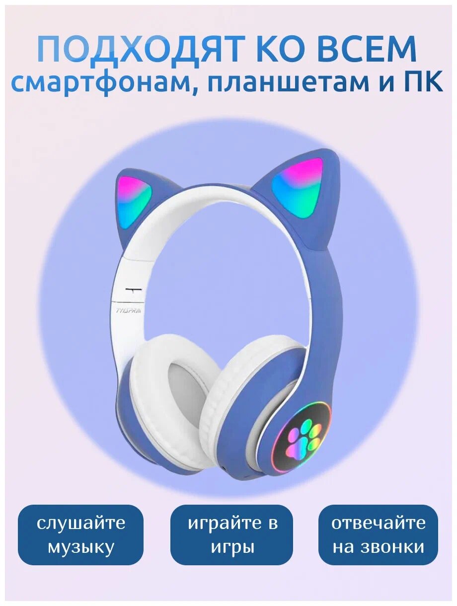 Беспроводные наушники Bluetooth со светящимися кошачьими ушами STN-28 / синие