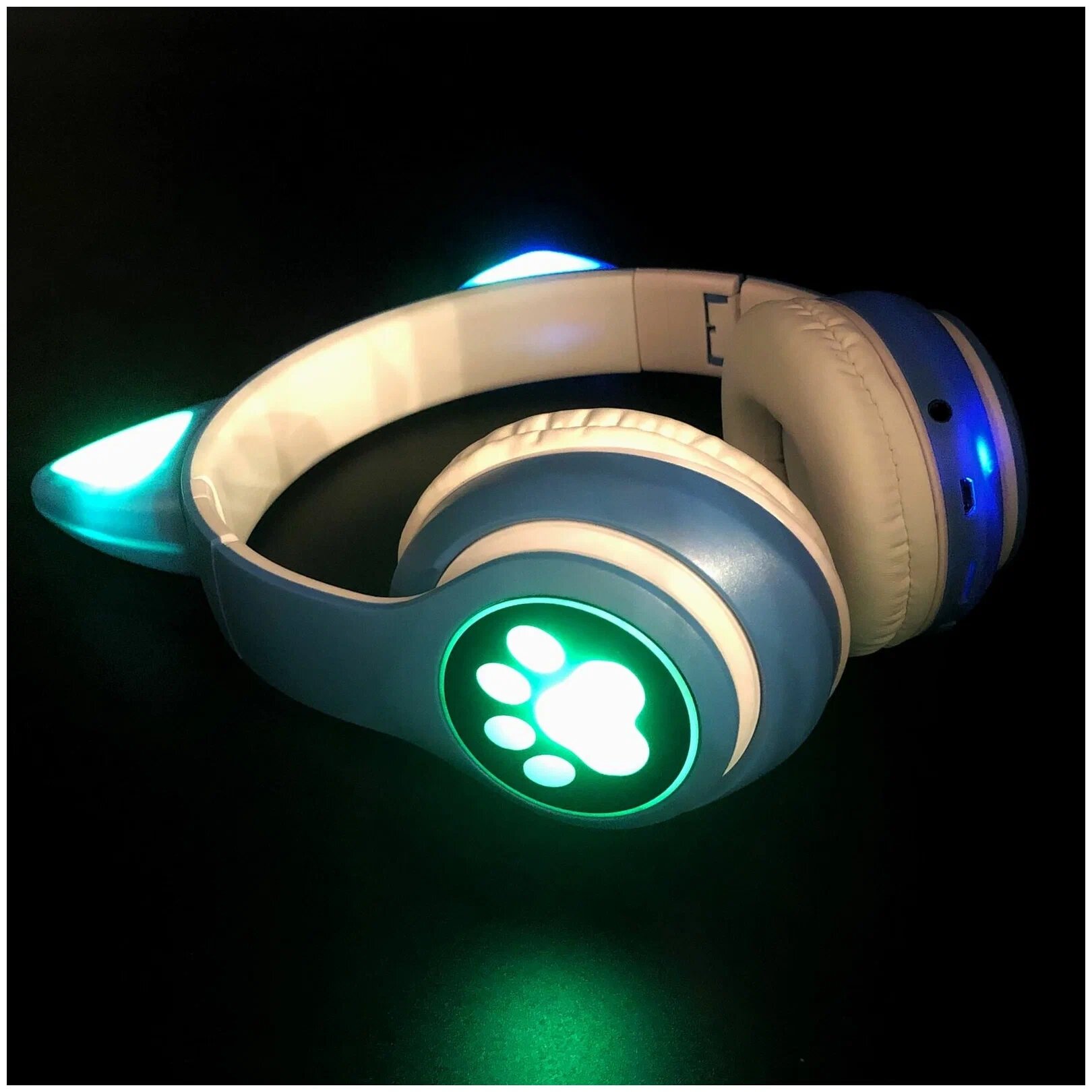 Беспроводные наушники Bluetooth CAT STN-28 со светящимися кошачьими ушками и лапками, детские (Синие)