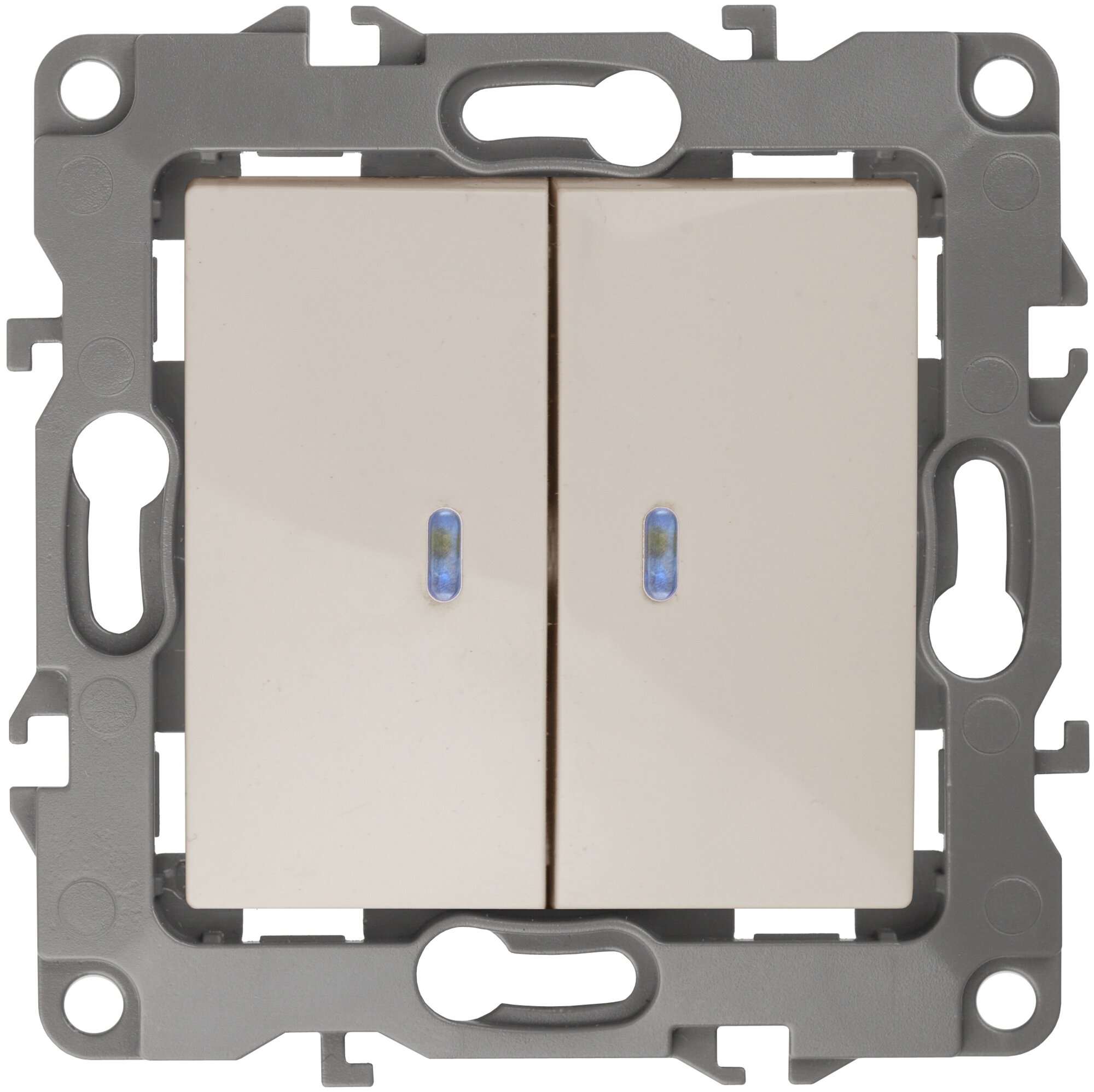 ЭРА 12-1105-02 Выключатель двойной с подсветкой, 10АХ-250В, IP20, слоновая кость Б0014658