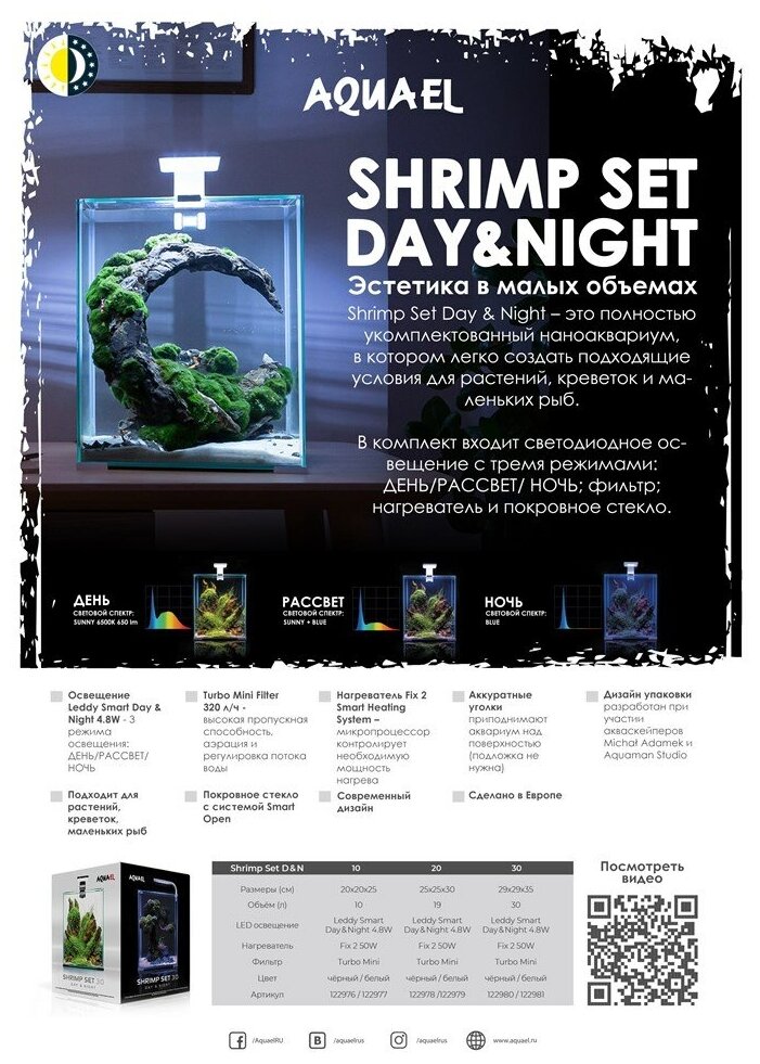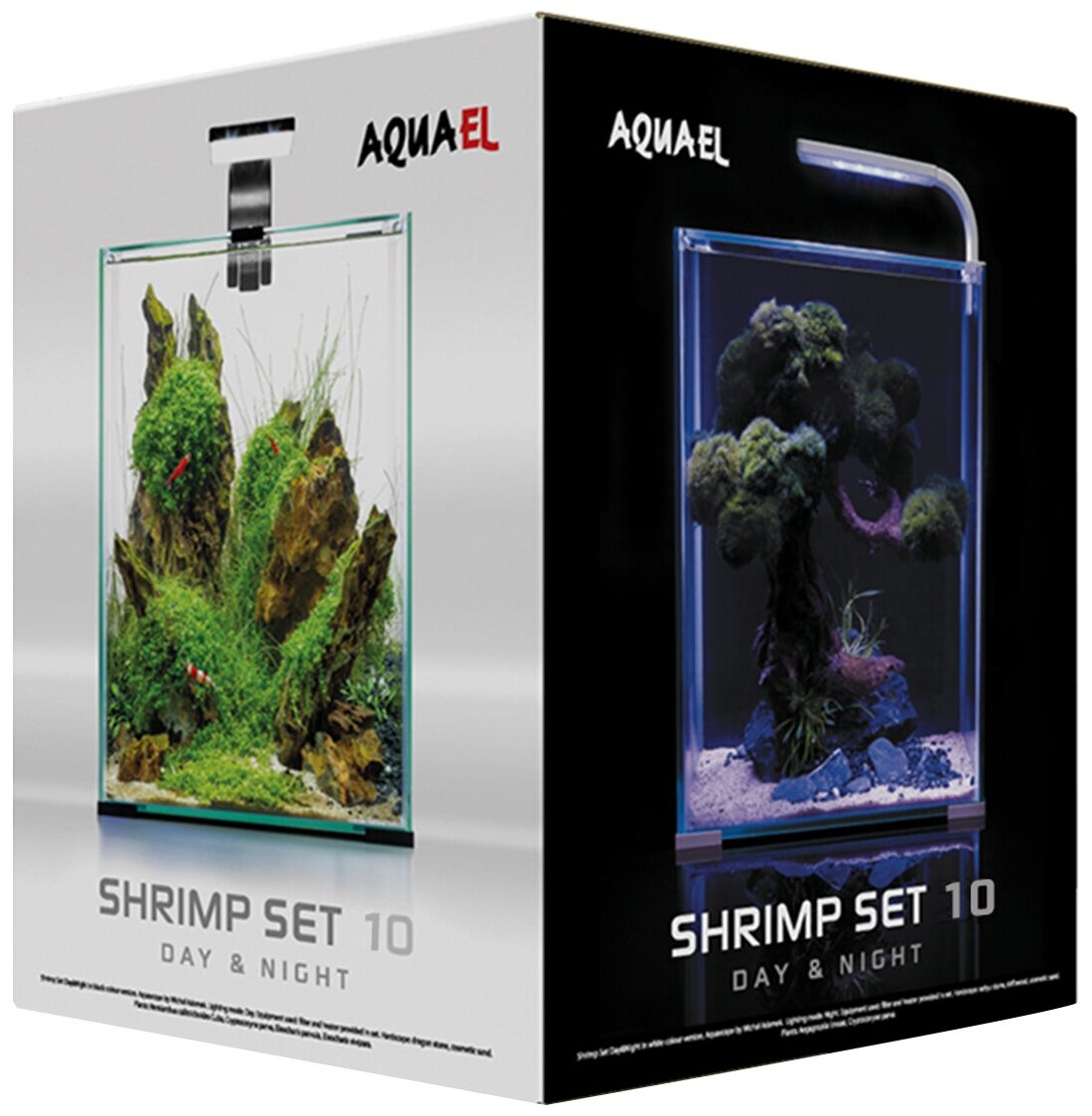 Лучшие цены. Аквариум Aquael Shrimp Set Day & Night 10, 10 л, 20,3*20,3*32,5 см SHRIMP SET DAY & NIGHT – аквариумы небольшого размера, которым легко найти место в квартире или в офисе на рабочем столе. Аквариумные комплексы SHRIMP SET DAY & NIGHT выбирают: - для оформления аквариумов с флуоресцирующими рыбами и декорациями (светятся в синем спектре); - любители креветок (в комплекте фильтр с открытой губкой, который обеспечит безопасное содержание ракообразных). Магазины в вашем городе.