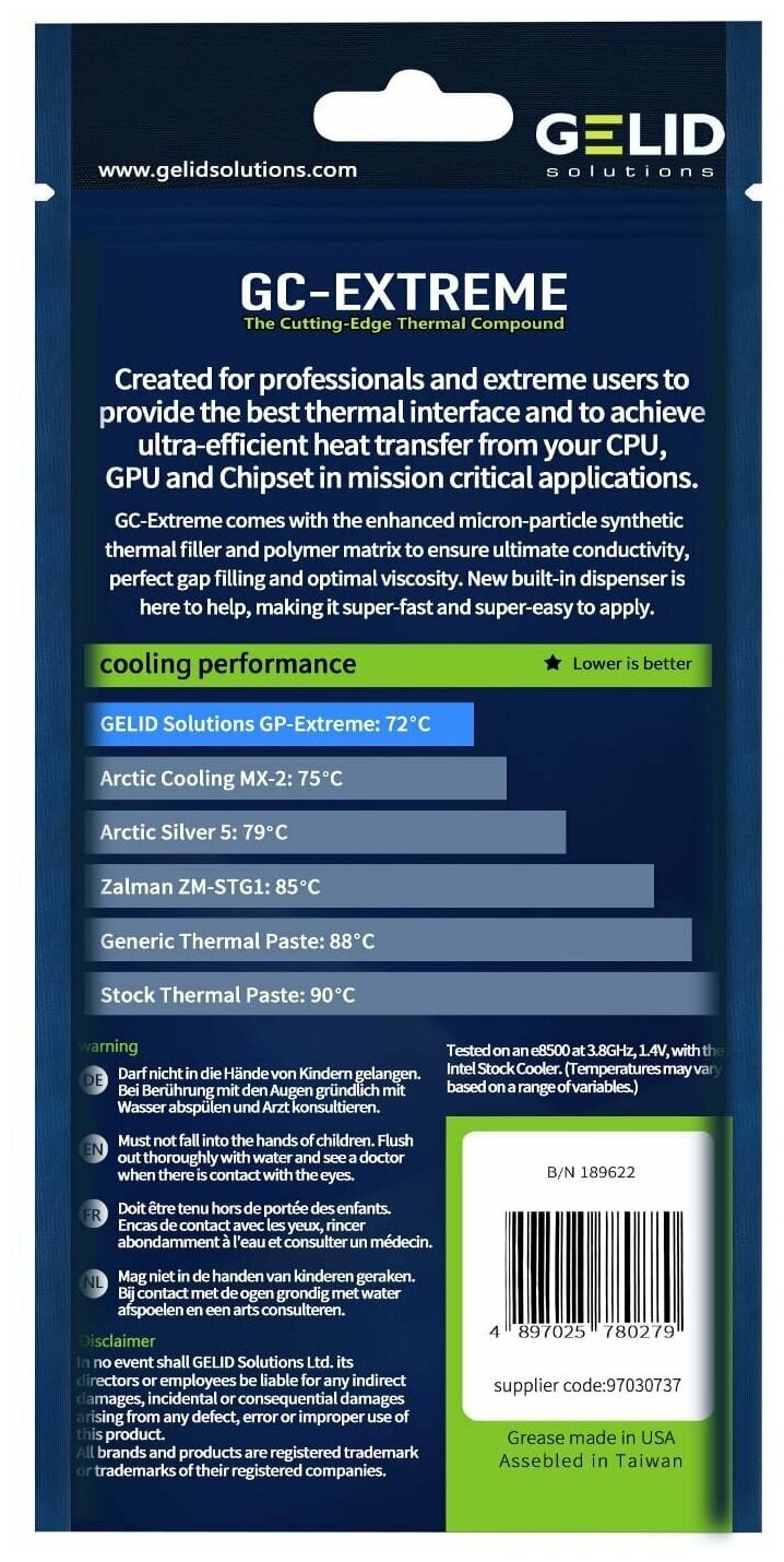 Термопасты и термопрокладки Паста теплопроводная GELID Solutions GC-Extreme 3.5 грамм TC-GC-03-A 8.5WMK