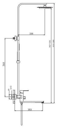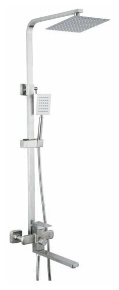 Лучшие цены. Душевая система обладает современным дизайном. Смеситель с длинным изливом 35 см. Изготовлен корпус из высококачественной и экологически безопасной пищевой нержавеющей стали (0% свинца). Выдвижная телескопическая стойка: высота функциональная 915-12650мм, вылет верхнего душа 336 мм. Лейка верхнего душа на подвижном шарнире, диаметром 200 мм. Штанга оснащена держателем лейки - плавающий FightFix и подвижными креплениями. Магазины в вашем городе.