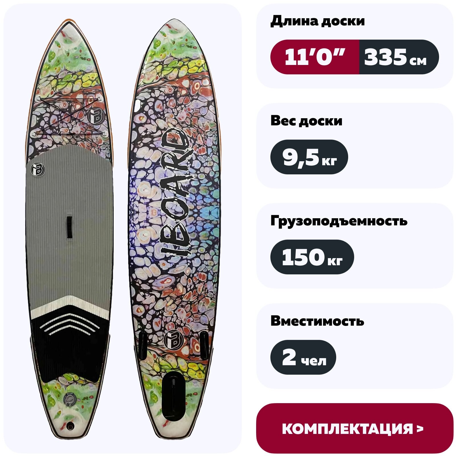 Лучшие цены. Iboard – это универсальная прогулочная доска для начинающих с набором функций, которыми могут наслаждаться все: устойчивость, жесткость, долговечность и портативность. Форма доски позволяет использовать сап на реках, озерах, морях, а уникальный яркий дизайн доски позволит Вам выделиться среди других райдеров. Подходит для занятий йогой, прогулок и для обучения новичков. В центре сапборда располагается удобная ручка для переноски. Магазины в вашем городе.
