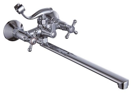 Лучшие цены. Покрытие: Хром Аэратор латунный с функцией легкой очистки Прямой плоский излив – 35 см Кран- букса – латунная (угол поворота 180*) Переключатель для душа – кран- букса 90* поворотный Шланг – длина 1,5 м Лейка душевая 3- х функциональная Эксцентрики с отражателями – 2 шт Материал: Латунь. Магазины в вашем городе.