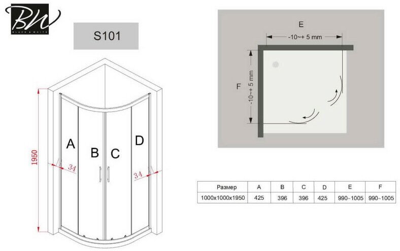 Душевой уголок Black&White Stellar Wind S101-1000 1011010 48 000 ₽ Подробнее
