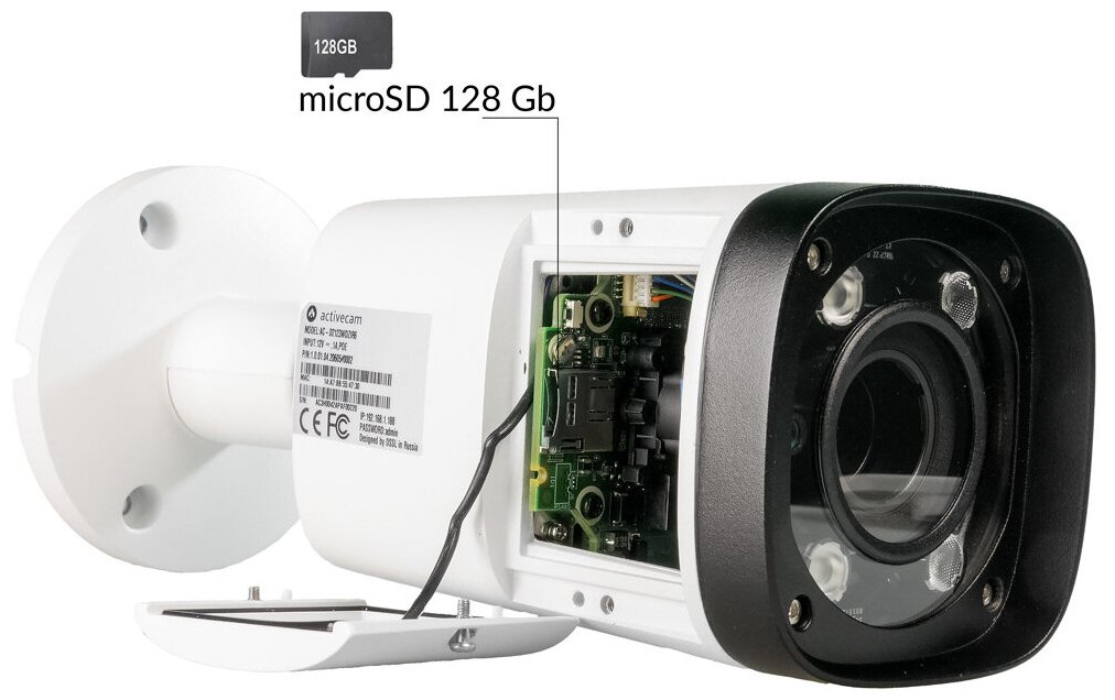 | Конструкция и возможности | PoE 802.3af / датчик освещенности / детекция движения / детекция звука / тревожный вход/выход / 1 вход, 1 выход / / аудиовход / выход / 1 вход, 1 выход / / ИК подсветка / картридер / microSD до 128 ГБ / |
