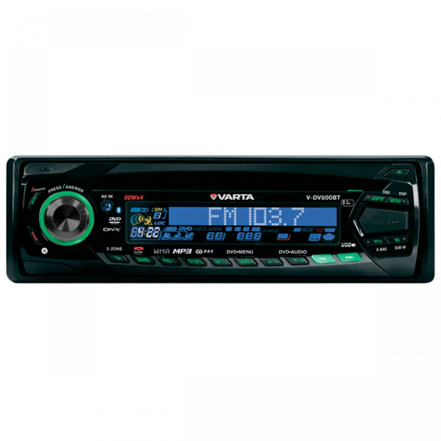 Лучшие цены. О товаре Автомобильная магнитола Varta V-DV800BT умеет работать с аудиодисками, цифровыми носителями и эфирным контентом радиостанций. Эта модель развлечёт автолюбителей и в дороге, и во время вынужденного простоя в пробках.Модель V-DV800BT поддерживает опцию дистанционного управления. С помощью пульта можно управлять всеми функциями магнитолы, не отвлекаясь от дороги. Характеристики: Макс. Магазины в вашем городе.