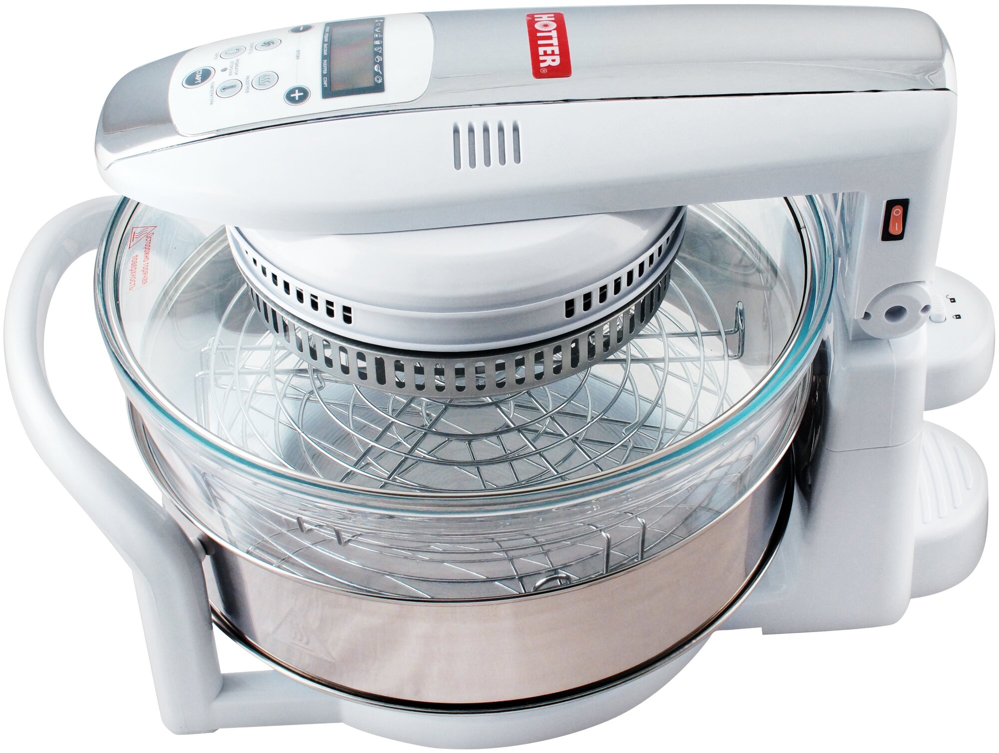 Лучшие цены. Аэрогриль HOTTER HX-1057 Platinum ЖК Модель очень удобная и надежная в эксплуатации. Отсрочка старта до 10 часов. Функция поддержания тепла. Регулировка температуры: 65-260 С. 3 скорости конвекции. Таймер на 10 часов. Съемные колба и стекло крышки для удобного мытья. Аэрогриль HOTTER HX-1057 Platinum ЖК известен как многофункциональный прибор, совмещающий в себе функции микроволновки, духовки с конвекцией, плиты, тостера, йогуртницы, пароварки, фритюрницы, стерилизатора, даже печи и мангала. Магазины в вашем городе.