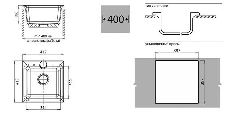 Лучшие цены. 420 PRACTIK GF-P--420 1-чаш. 417*417 топаз Размер чаши, мм: 345*322*190 Материал: мрамор Установка измельчителя отходов: да Оснащение: сифон, гарантийный талон. Магазины в вашем городе.