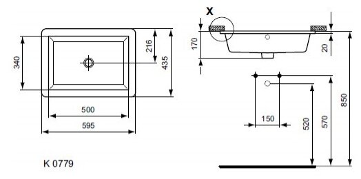 Умывальники Раковина встраиваемая Ideal Standard Умывальник Ideal Standard K077901 STRADA, встраиваемый под столешницу, 59 см