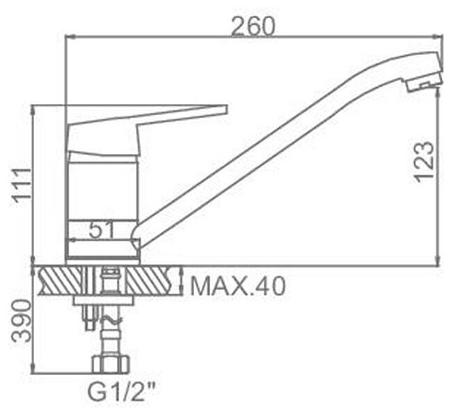 Смесители Смеситель для кухни, дл.излив, карт.40мм, шпиль Ledeme, 1/20; L4268-B