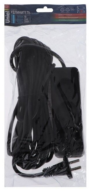 Uniel Удлинитель Uniel Standart, 3 розетки, 7 м, 10 А, 2500 Вт, без з/к, черный