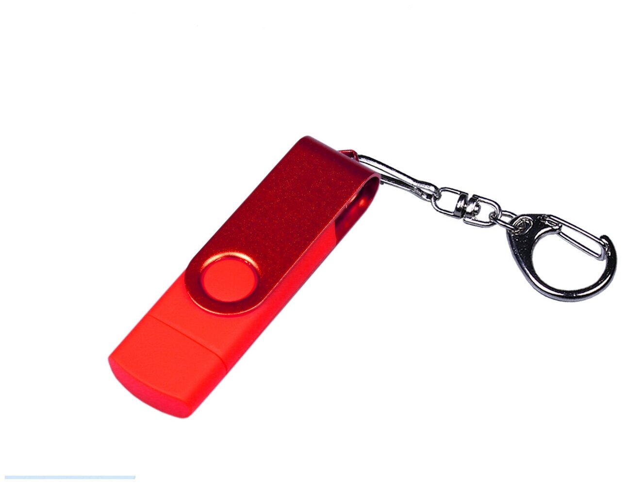 USB-флешки Поворотная флешка 3-в-1 (64 Гб / GB USB 2.0/USB Type-C/microUSB Красный/Red OTG-3-in-1_TypeC_031 под нанесение логотипа оптом)