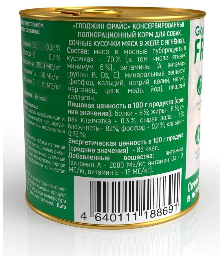 Корм для собак FRAIS HOLISTIC 850гр Корм для собак мясные кусочки с ягненком в желе