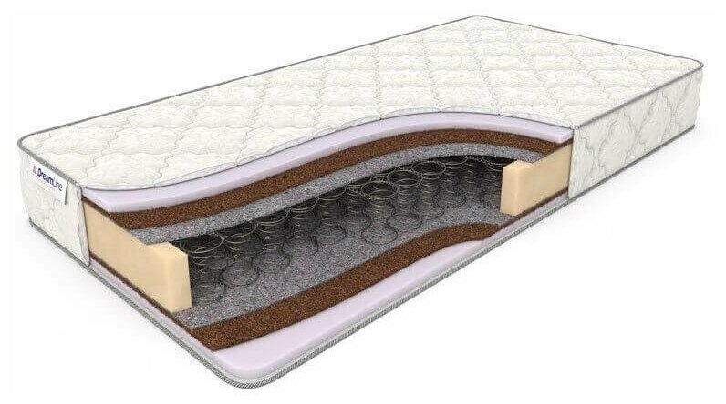 Лучшие цены. Матрас Dreamline Eco Foam Hard BS-120 – пружинный матрас с жесткостью сторон выше средней. В качестве наполнителя матраса используются термовойлок, пенополиуретан (ппу), кокосовая койра. В основе матраса лежит зависимый пружинный блок (Боннель). Высота матраса 20 см, что оптимально для большинства современных моделей кроватей. Чехол матраса не съемный, материал чехла - жаккард. Матрас поставляется в развернутом виде. Магазины в вашем городе.