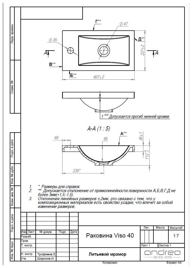 Лучшие цены. Раковина Andrea Vizo 40 4650002680906 Свойства. Форма: прямоугольная; Кол-во основных чаш: 1; Цвет: белый; Поверхность: глянцевая; Отверстия под смеситель: 1; Ширина (см): 40.7; Глубина (см): 22.7; Глубина чаши (см): 11,2; Высота (см): 12.5; Вес (кг): 5; Материал: искусственный мрамор; Покрытие: гелькоут; Способ крепления: на тумбу; Диаметр слива (см): 4,7; Тип раковины: полувстраиваемая; Бренд: Andrea; Гарантийный срок: 4 года; Коллекция: Vizo; Страна: Россия; Заводской артикул: 4650002680906; Страна. Магазины в вашем городе.