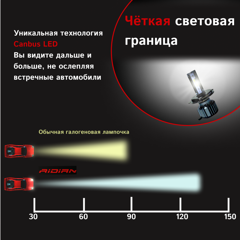 Автолампы Автолампа светодиодная RIDIAN H4-H/L 6000K