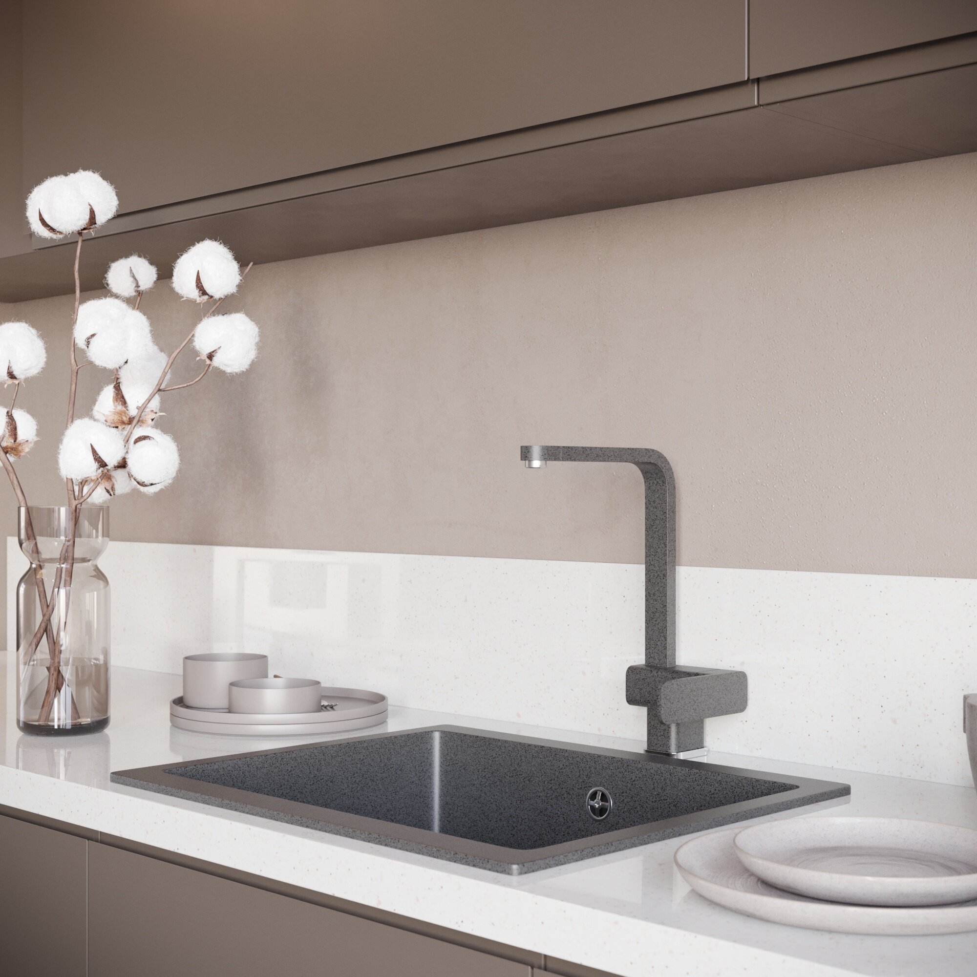 Лучшие цены. Прямоугольная кухонная мойка Domaci «Солерно EMQ-1555.Р» — эффектный вариант для ценителей смелых решений. Оттенок «антрацит», сочетающий два цвета — черный и серый, актуален для большинства современных стилей. Модель из кварцевого агломерата устойчива к случайным ударам и при надлежащей эксплуатации прослужит долгие годы. Полезным аксессуаром станет корзинчатый вентиль, который поможет наполнить чашу водой или задержать крупные отходы. Встраиваемая мойка устанавливается выше или ниже столешницы. Магазины в вашем городе.