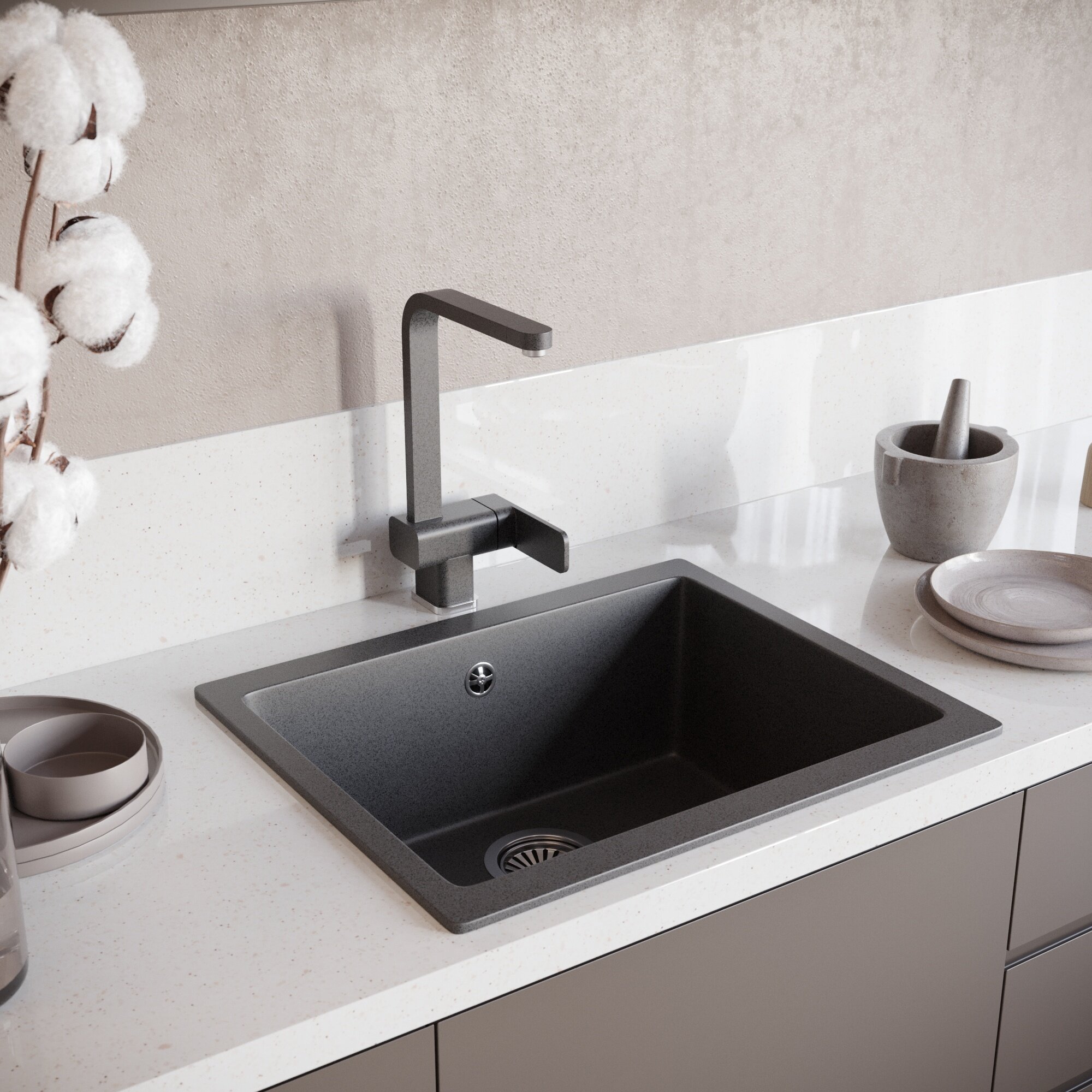 Кухонные мойки Мойка кухонная Domaci Солерно EMQ-1555.Р антрацит, 56х46 см, прямоугольная кварцевая, встраиваемая
