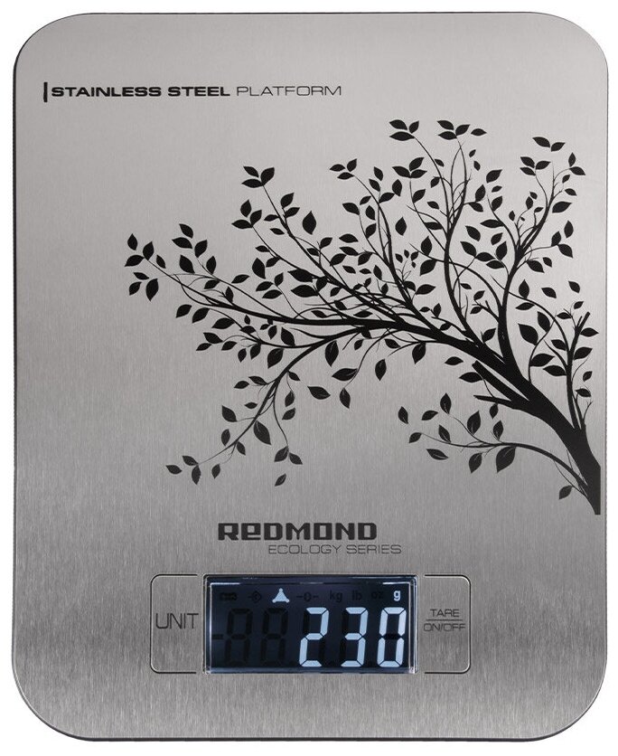 Лучшие цены. REDMOND RS-M748 – это современные кухонные весы с корпусом из нержавеющей стали и ЖК-дисплеем. Стильная модель с изящным рисунком прекрасно подойдет к любому интерьеру. 4 высокочувствительных датчика Встроенные высокочувствительные датчики помогут измерить вес любого продукта в диапазоне от 2 г до 5 кг с точностью до 1 г. Вы можете самостоятельно установить наиболее удобную подходящую единицу измерения: грамм, фунт, унция, килограмм. Магазины в вашем городе.