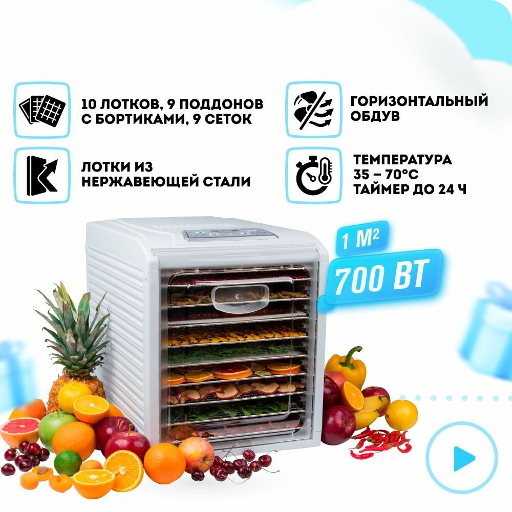 Дегидратор Dream Vitamin DDV-10 белый (10 поддонов из нержавеющей стали)