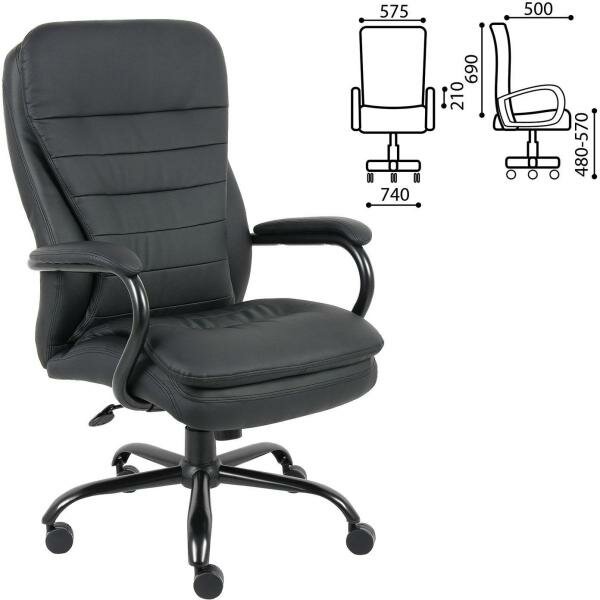 Кресло руководителя Brabix "Heavy Duty HD-001", усиленная конструкция, нагрузка 200 кг, экокожа
