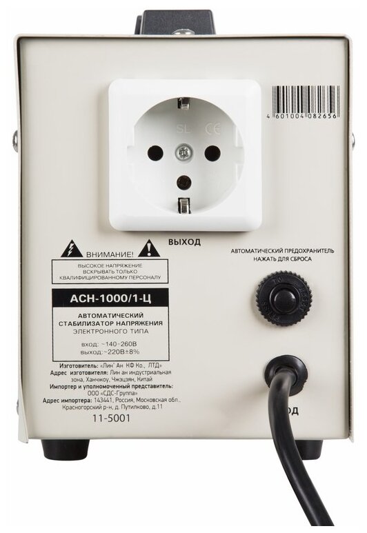 Однофазный стабилизатор (AСН-1 000/1-Ц) для защиты от перепадов в сети, В 140-260