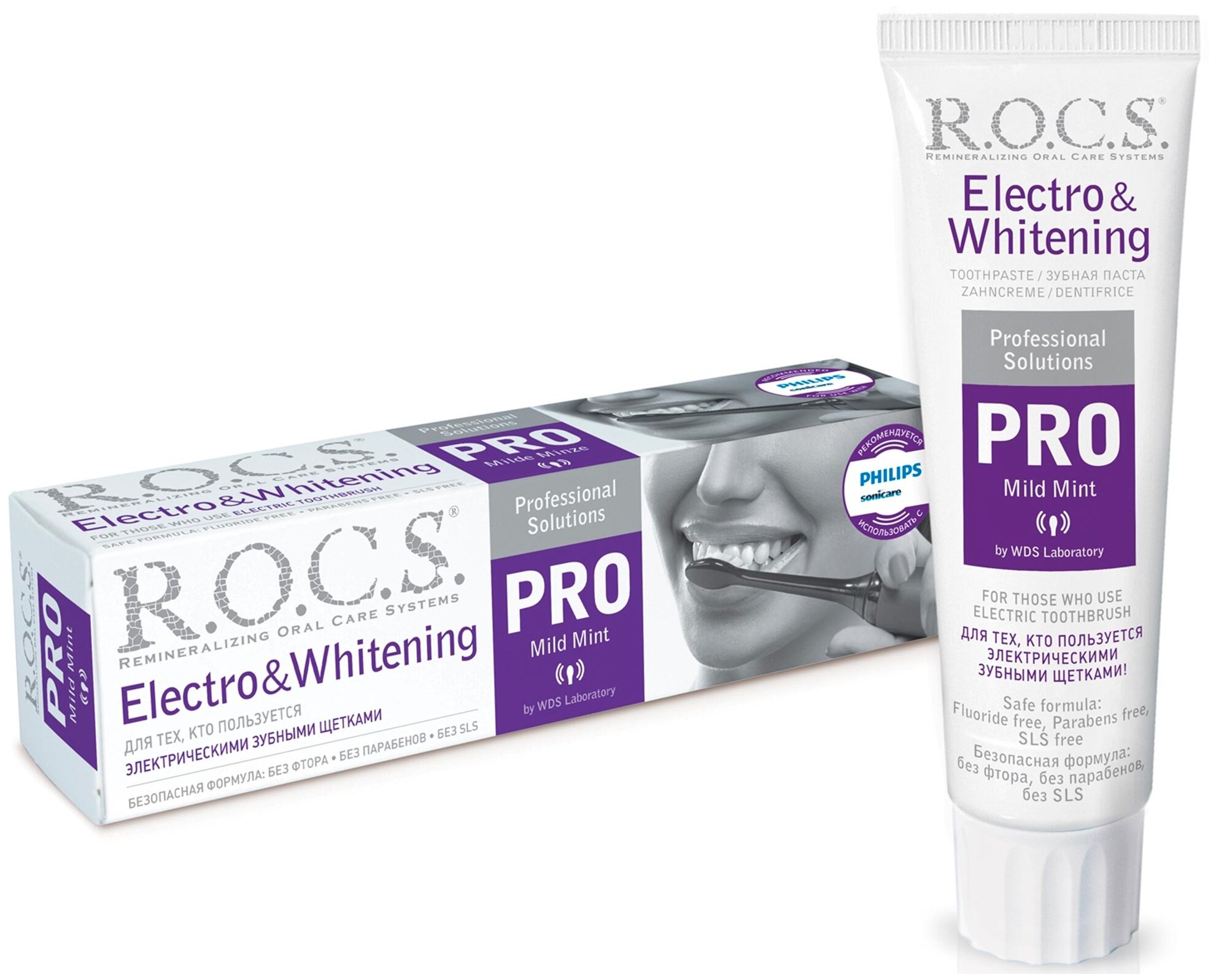 Лучшие цены. Лечебно-профилактическая зубная паста R. O. C. S. PRO «Electro & Whitening» с ароматом Mild Mint создана специально для совместного использования с современными высокотехнологичными электрическими зубными щетками. Испытание данного продукта осуществлялось совместно с эффективной премиальной моделью электрических звуковых зубных щеток Philips Sonicare. Сочетанное применение двух современных разработок (зубной пасты ROCS PRO «Electro & Whitening» и электрических щеток любых моделей). Магазины в вашем городе.