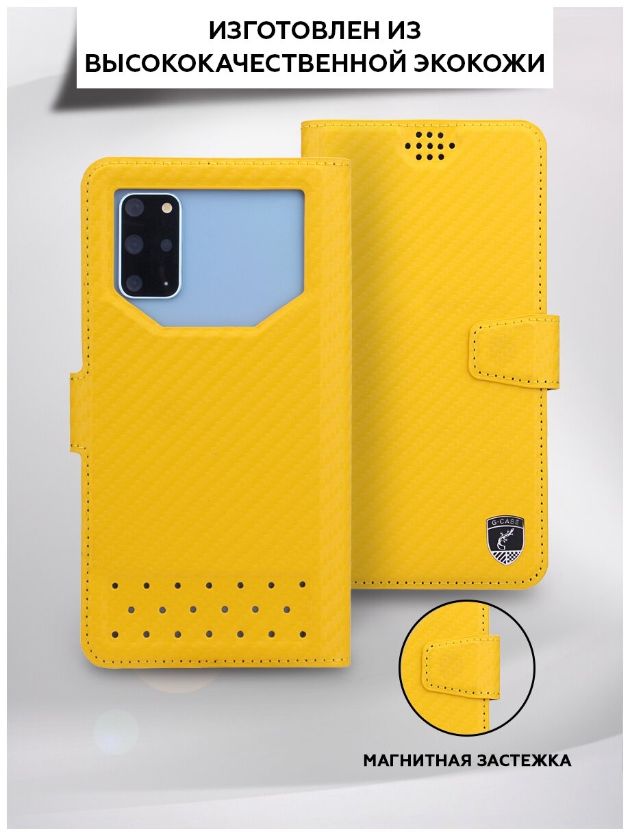 Чехлы для мобильных телефонов Универсальный чехол-книжка для смартфонов с размером до 17*9 см., G-Case Slim Premium XL, карбон желтый