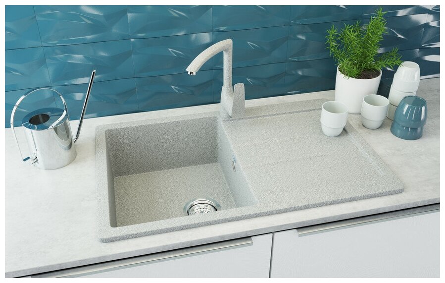Мойка Ulgran, мрамор, U-507-310, (770*495*190 мм), серый, сифон и сливная арматура