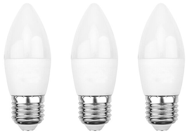 Светодиодная лампа Rexant Свеча E27, 7.5 Вт, 713 Лм (=60 Вт), 4000 K (нейтральный свет), упаковка 3 шт.