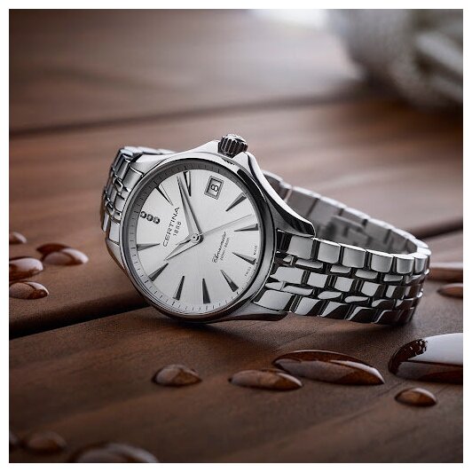 Швейцарские кварцевые часы Certina DS Action Lady Diamonds C032.051.11.036.00 на стальном браслете, с водозащитой 20 бар и международной гарантией от производителя