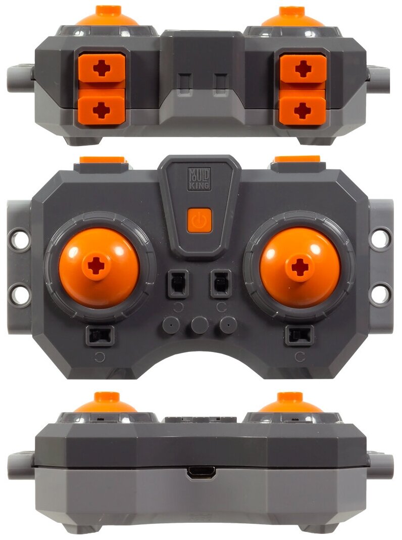 Лучшие цены. Пульт управления нового поколения от Mould King, имеет несколько значительных преимуществ перед пультами прошлых серий: дальность связи стала ещё выше; появилась возможность регулировки скорости. В лучшую сторону изменился дизайн, старые элементы питания заменены на более современные. Вместо обычных батареек в пульте расположен литий-ионный аккумулятор, с возможностью его зарядки через mini-USB кабель. Магазины в вашем городе.