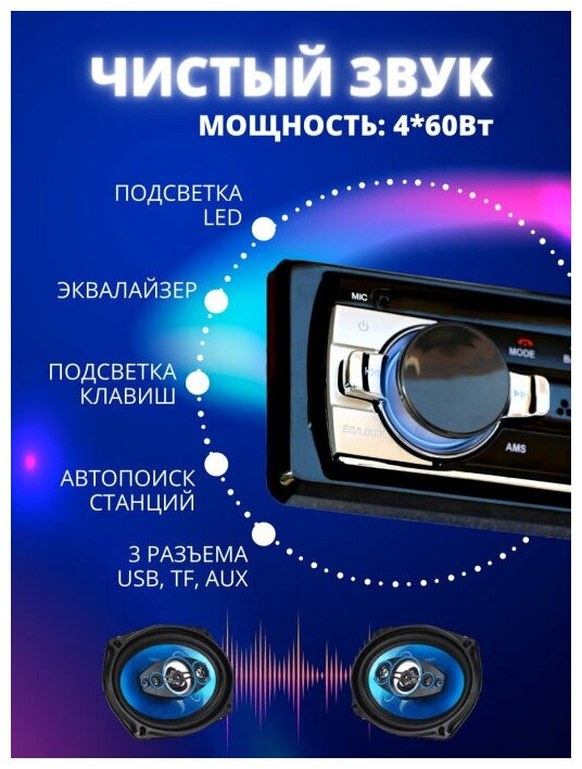Автомагнитолы Автомагнитола 1DIN, стереоплеер, цифровой Bluetooth, автомобильный MP3-плеер, 60Wx4, FM-радио, стереозвук, музыка, USB/SD, с входом AUX