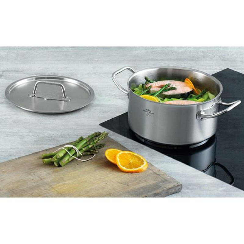 Лучшие цены. Страна производства : Швейцария Материал : Нержавеющая сталь 18/10 Объем : 6.50 л Вес : 2300.00 г Диаметр : 22.00 см Длина : 33.50 см Высота : 20.50 см Цвет : Стальной Наличие крышки : да Ручки : Фиксированные Нагрев : Можно использовать в духовке, Любой тип нагревательных поверхностей, включая индукционные. Магазины в вашем городе.
