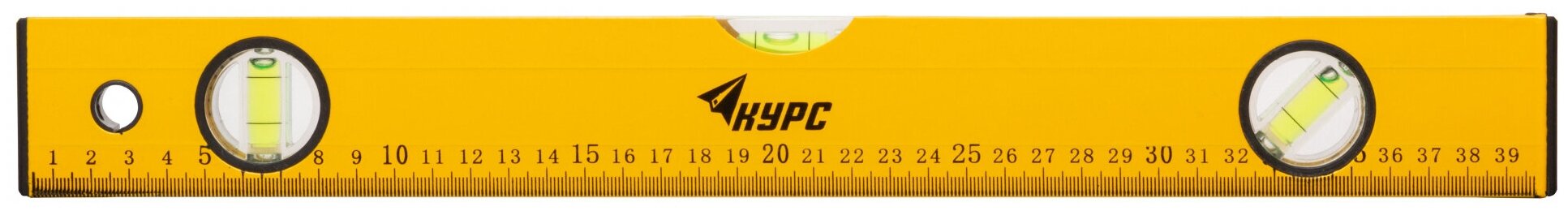 Лучшие цены. Уровень курс Лайт 3 глазка, 400мм 18012 предназначен для точных замеров. Произведен из прочных материалов, что гарантирует долгий срок эксплуатации. Незаменим при выполнении ремонтных работ. Имеется шкала, что позволяет использовать уровень ка клинейку. Магазины в вашем городе.
