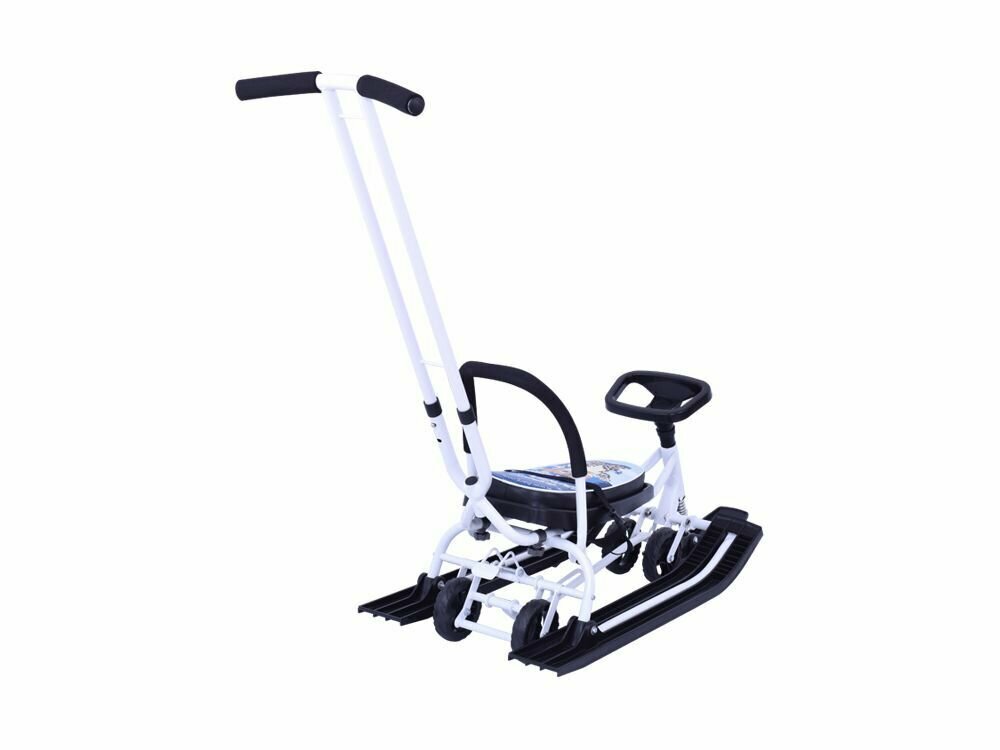 Санки Снегокат 111 Mobile с Т-образным толкателем и колесной базой (Sweet Winter белый)