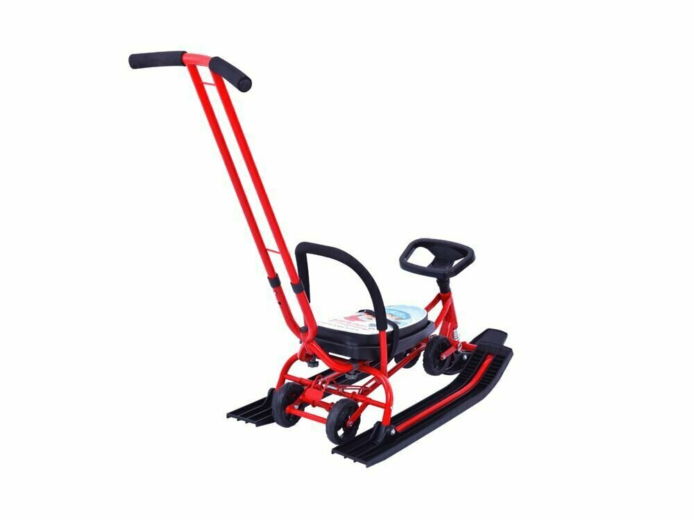 Санки Снегокат Барс 111 Mobile с Т-образным толкателем и колесной базой Sweet Winter красный