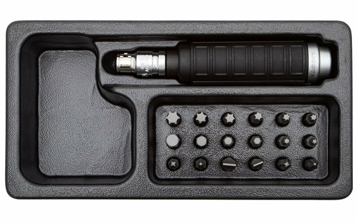 Лучшие цены. Описание: Отвертка ударная со сменными битами Licota ACK-274012, набор из 20 предметов в пластиковом ложементе. В комплект входят биты с профилями SL (шлиц), PH (крест), PZ (POZIDRIV), H (шестигранник) и Torx. Набор предназначен для ручных ремонтно-монтажных работ с самыми распространенными типами крепежа там, где требуется дополнительное усилие. Подходит для демонтажа заржавевшего или “закисшего” крепежа. Металлическая рукоятка дает возможность использовать молоток для срыва крепежа. Магазины в вашем городе.