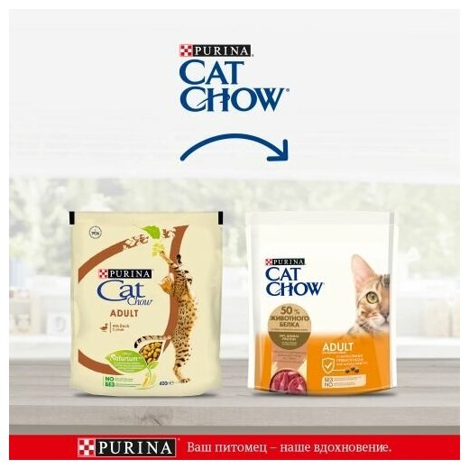 Лучшие цены. Ваша кошка — уникальное создание. Чтобы она продолжала радовать вас, Purina создала корм Cat Chow с качественным белком и натуральными ингредиентами (петрушка, шпинат, морковь, цельные зёрна злаков, цикорий и дрожжи). Рацион отличается высоким содержанием домашней птицы и включает Naturium (особое сочетание волокон из натуральных источников), а также источник натурального пребиотика, который поддерживает здоровое пищеварение вашей любимицы. Это позволяет ей питаться с большей пользой. Магазины в вашем городе.