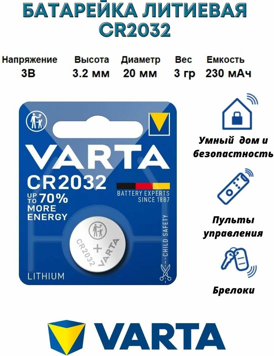 Батарейка ключа, VARTA CR2032 (1 шт.)
