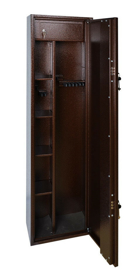 Лучшие цены. Габариты внешние, мм высота - 1550 ширина - 400 глубина - 250 Двухключевой замок на 5-6 стволов. Магазины в вашем городе.