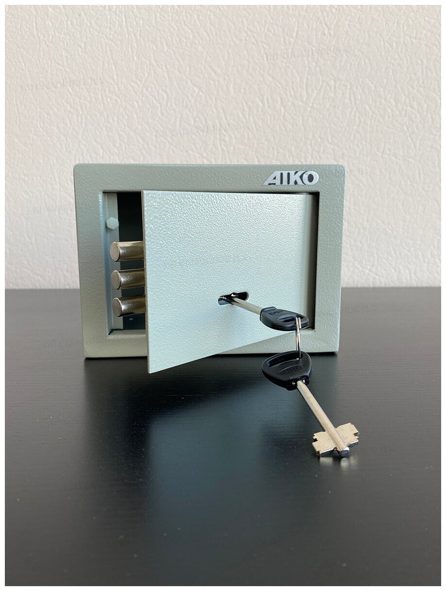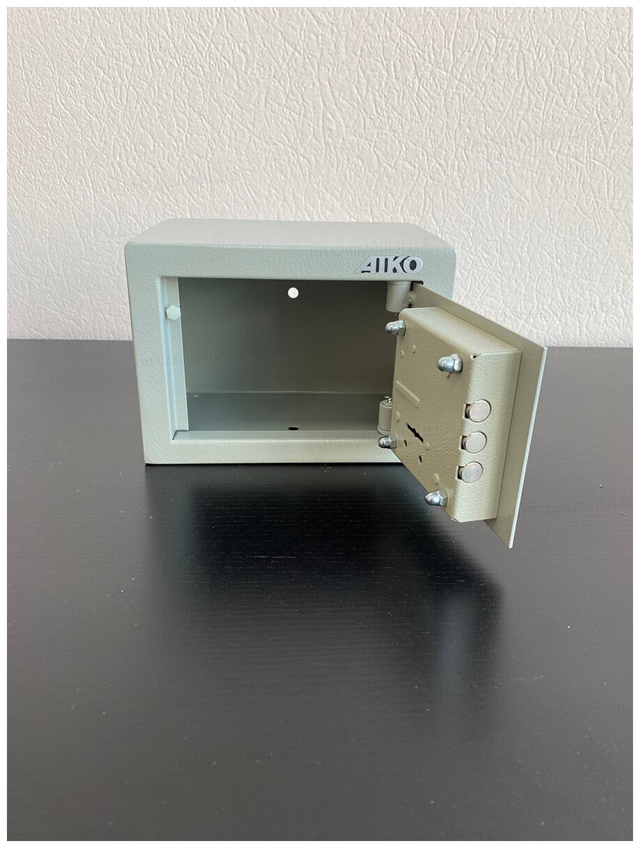 Лучшие цены. Сейф мебельный AIKO 139х190х140 мм для хранения денег, документов, ключей, личных ценностей, часов, печатей, трудовых книжек, маленького оружия, больших патронов и пистолетов. Толщина усиленной лицевой панели - 2.8 мм, корпуса 1.2 мм. Замок Border. Поверхность имеет износостойкое порошковое покрытие. Металлический ящик с замком подойдет для домашнего или офисного использования, его берут для дома, офиса, квартиры, дачи, магазина или кабинета, и ставят в шкаф купе, в стол, или другое место. Магазины в вашем городе.