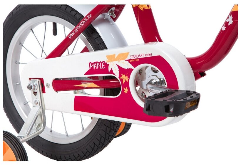 Велосипед NOVATRACK 14" MAPLE, красный, полная защита цепи, тормоз нож, крылья цвет, сидение для кук
