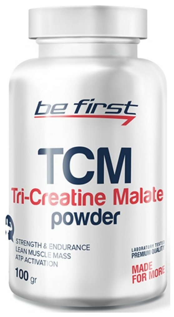 Три креатин малат Be First, TCM Tri-Creatine Malate Powder, 100 г / Рост мышечной массы и силовых показателей / Восстановление мышц