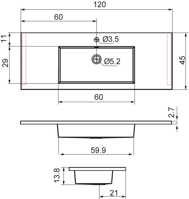 | Габариты (ШхГхВ) | 1200х450х138 мм |