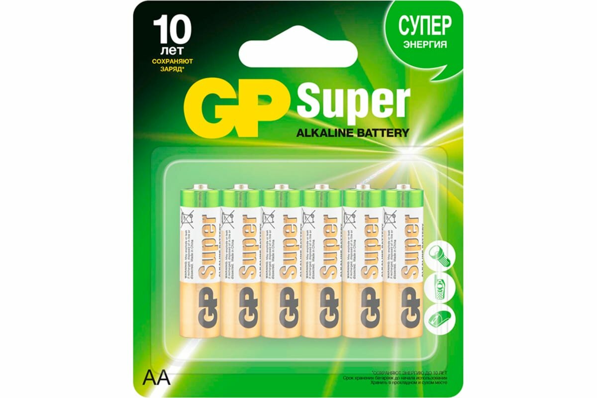 Батарейка GP Super Alkaline 15A LR6 AA (10шт) . 815 ₽ Подробнее