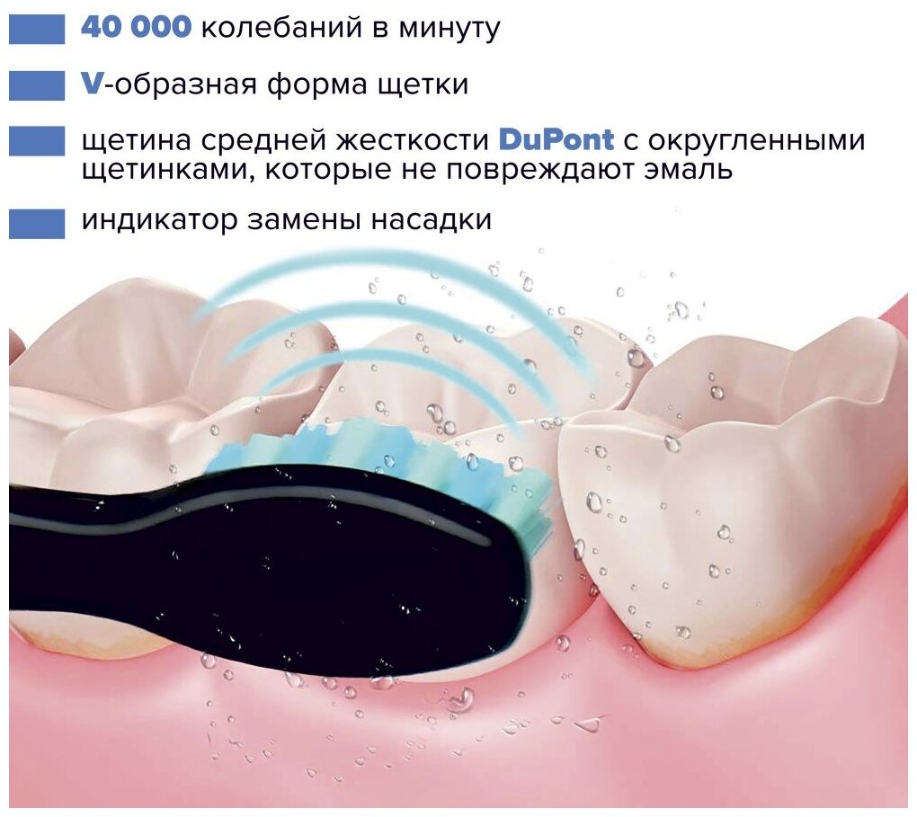 Лучшие цены. Идеальная чистка с помощью звуковой технологии 40 000 колебаний в минуту. Удаляет до 100 % больше зубного налета и камней в сравнении с обычной зубной щеткой. 4 часа зарядки обеспечивает минимум 30 дней использования. Интеллектуальный таймер на 2 минуты с интервальной паузой, напоминающей каждые 30 секунд, что необходимо почистить следующую зону полости рта и выработать привычку правильной чистки зубов. Водонепроницаемый корпус "IPX7" позволит чистить зубы прямо в душе. Магазины в вашем городе.