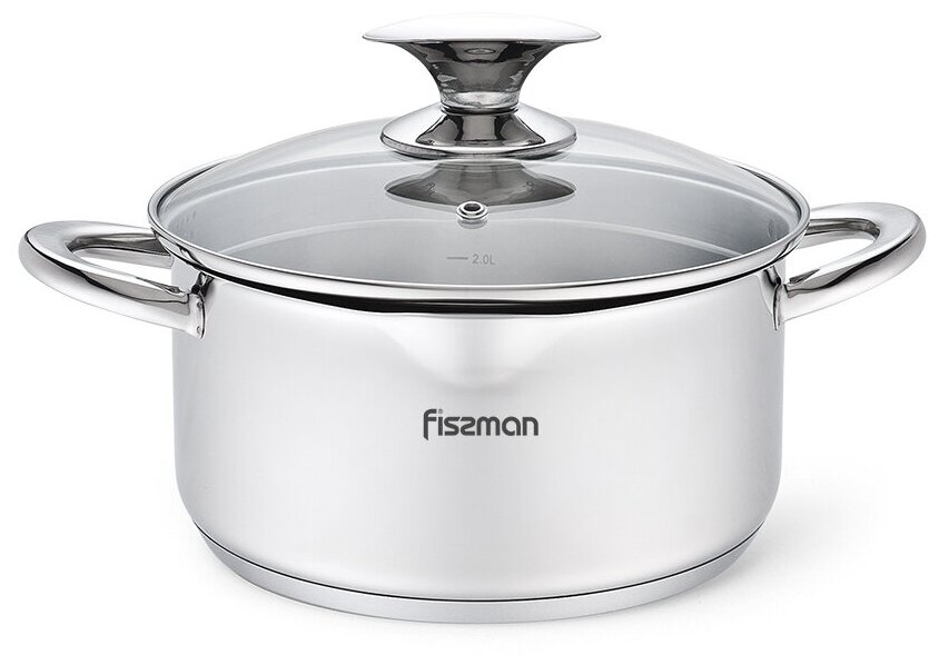 5492 FISSMAN Кастрюля ELEGANCE 3,1 л; 20x10 см с крышкой (нерж.сталь) Ручки - нерж.сталь; Крышка - стекло; Индукция; Термоаккумулирующее многослойное дно.